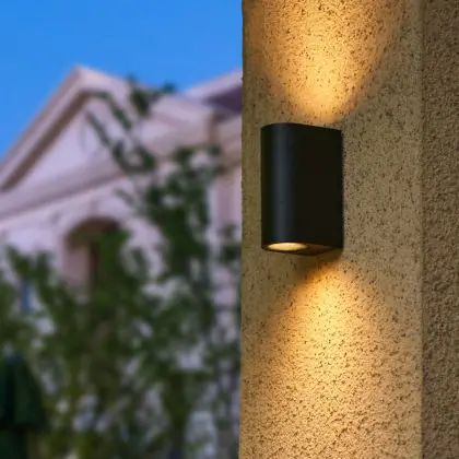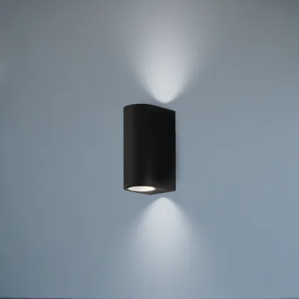Verleihen Sie Ihren Innen- und Außenbereichen mehr Ausdruck mit der D-Lite LED-Wandleuchte Vossem Aluminium Schwarz – einer stilvollen und langlebigen Beleuchtungslösung mit beidseitigem Lichtaustritt. Diese zylindrische Leuchte aus robustem Aluminium mit eleganter schwarzer Oberfläche strahlt Licht nach oben und unten aus und erzeugt so ein edles Lichteffekt an der Wand. Sie ist kompatibel mit zwei GU10-Leuchtmitteln, sodass Sie Lichtfarbe und Helligkeit individuell wählen können. Dank der Schutzart IP54 ist sie sowohl für den Innenbereich als auch für geschützte Außenbereiche geeignet.