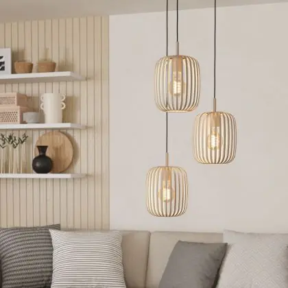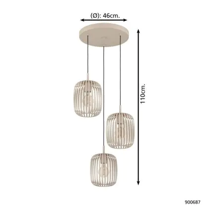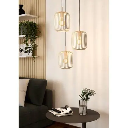 Die Eglo Pendelleuchte Romazzina Stahl Sandig | Geeignet für 3x E27 sorgt für eine angenehme Ausleuchtung und punktet durch modernes Design. Diese Leuchte ist speziell zur Montage an der Decke vorgesehen.