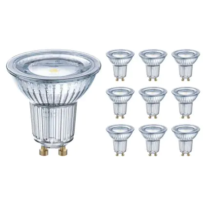 Die Mehrfachpackung 10x Ledvance Performance LED-Spot Reflektor GU10 PAR16 6.9W 620lm 120D - 840 Kaltweiß | Ersatz für 49W ist eine effiziente GU10 LED-Lampe und der perfekte Ersatz für Ihre konventionelle Halogenlampe mit 49W und einem GU10-Sockel, bei welchem die zwei Stifte einen Abstand von 10 mm zueinander haben. Zudem strahlt das Produkt Licht in der Farbtemperatur 4000K - Kaltweiß aus und punktet durch eine lange Lebensdauer.