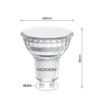 Die Noxion LED-Spot GU10 PAR16 5.5W 620lm 120D - 840 Kaltweiß | Ersatz Für 50W ist eine effiziente GU10 LED-Lampe und der perfekte Ersatz für Ihre konventionelle Halogenlampe mit 50W und einem GU10-Sockel, bei welchem die zwei Stifte einen Abstand von 10 mm zueinander haben. Zudem strahlt das Produkt Licht in der Farbtemperatur 4000K - Kaltweiß aus und punktet durch eine lange Lebensdauer.