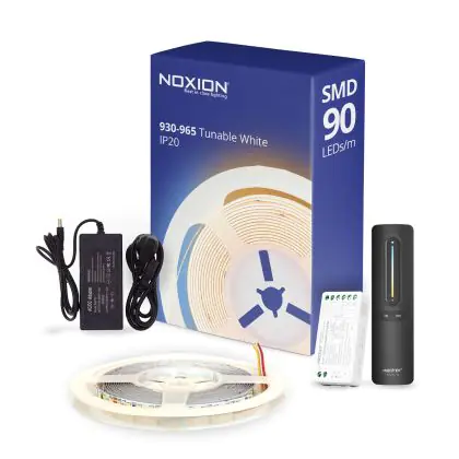 Beschreibung Noxion LED-Streifen Naga 5 Meter Komplettset - 24V - 120LEDs/m - 9.6W/m - 930-965 Abstimmbares Weiß | 8mm - IP20 - Höchste Farbwiedergabe - SMD2835