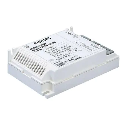 Der Philips HF-Regulator PL-T/C ist ein dimmbares Vorschaltgerät speziell für PL-T/C Lampen. Die Lichtstärke einer an das Philips HF-REGULATOR PL-T/C angeschlossenen Lampe lässt sich von 1% (3% bei 18W) bis 100% regeln.