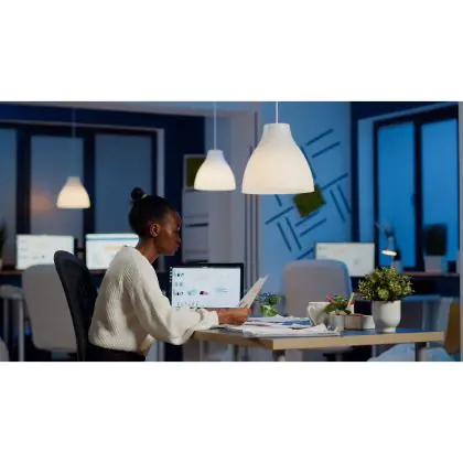 Die E27 LED-Lampe von Philips kann mit der Farbtemperatur 2700K - Extra Warmweiß sowohl als Akzent- als auch als Allgemeinbeleuchtung verwendet werden. Als Faustregel gilt: Je niedriger der Kelvinwert, desto gemütlicher wirkt das Licht.