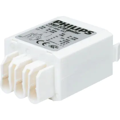 Philips HID-Zündgeräte (semi-parallel) eignen sich zum Betrieb von konventioneller Beleuchtung mit einem magnetischen Vorschaltgerät. Es deckt eine große Bandbreite an Lampen und Vorschaltgeräten ab und kann dank seiner kompakten Konstruktion auch in kleinen Leuchten eingesetzt werden.