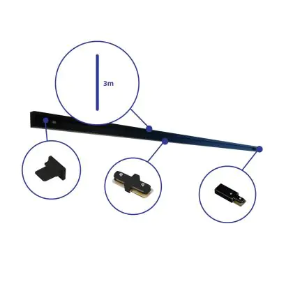 Rail Set 1-Phasen 3 Meter Schwarz | incl. Abschlusskappe, Stromanschluss und L-Verbinder