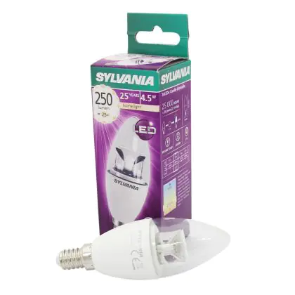 Die Sylvania ToLEDo E14 Kerze Krone Klar 4.5W 250lm - 827 Extra Warmweiß | Dimmbar - Ersatz für 40W ist eine effiziente E14 LED-Lampe und der perfekte Ersatz für Ihre konventionellen 40W Lampen mit E14-Sockel. Zudem strahlt sie Licht in der Farbtemperatur 2700K - Extra Warmweiß aus und punktet durch eine lange Lebensdauer.